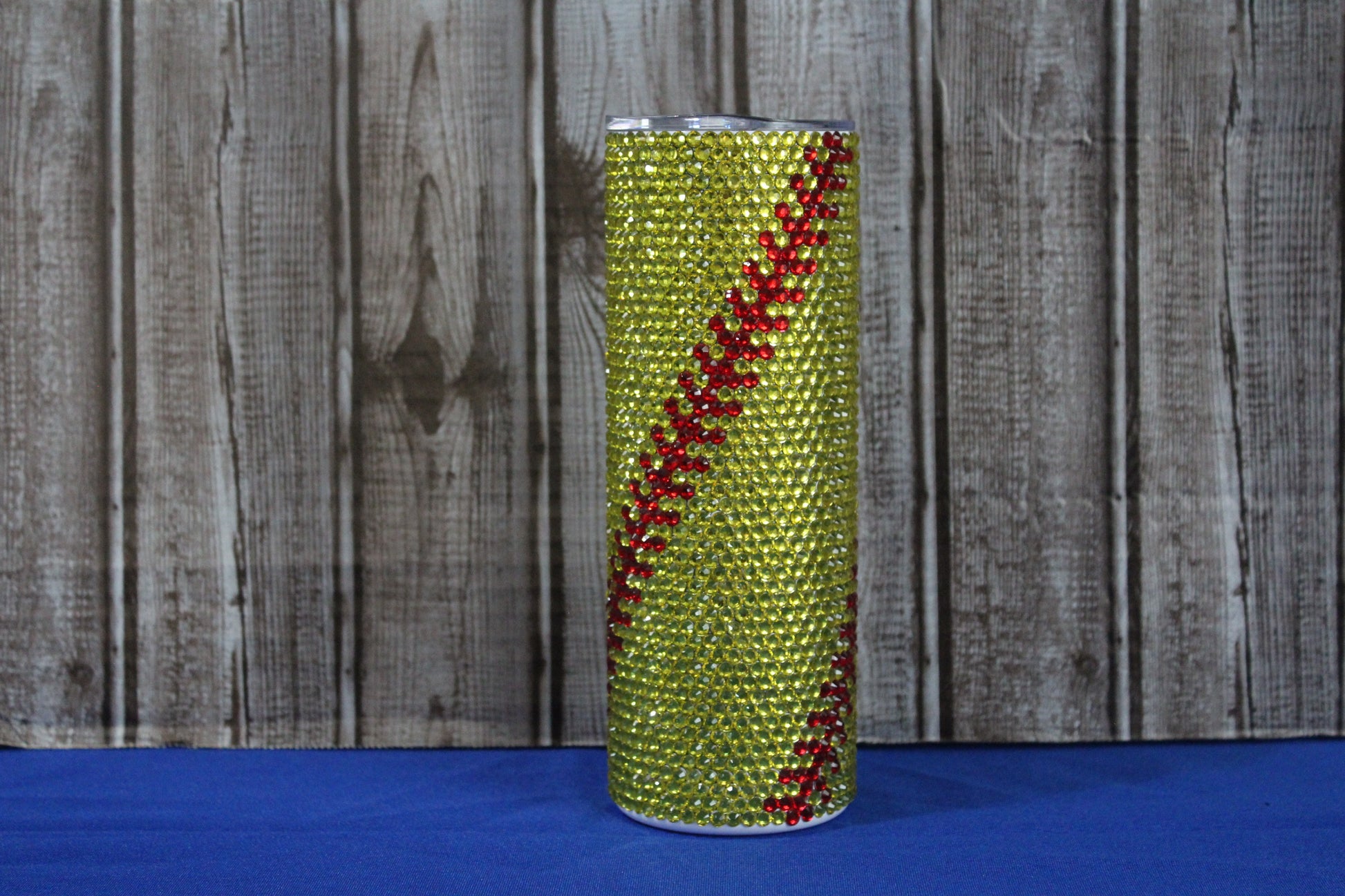 This is a 20 oz. Stainless steel tumbler with rhinestones applied in a honeycomb method.